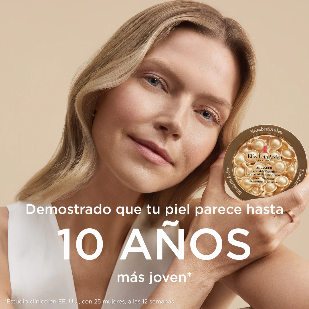 Elizabeth Arden Advanced Ceramide Cápsulas es un suero restaurador en cápsulas monodosis biodegradables que combate los principales signos de la edad. Su triple acción penetra en la piel para una apariencia visiblemente más suave, firme y juvenil con su uso continuado.