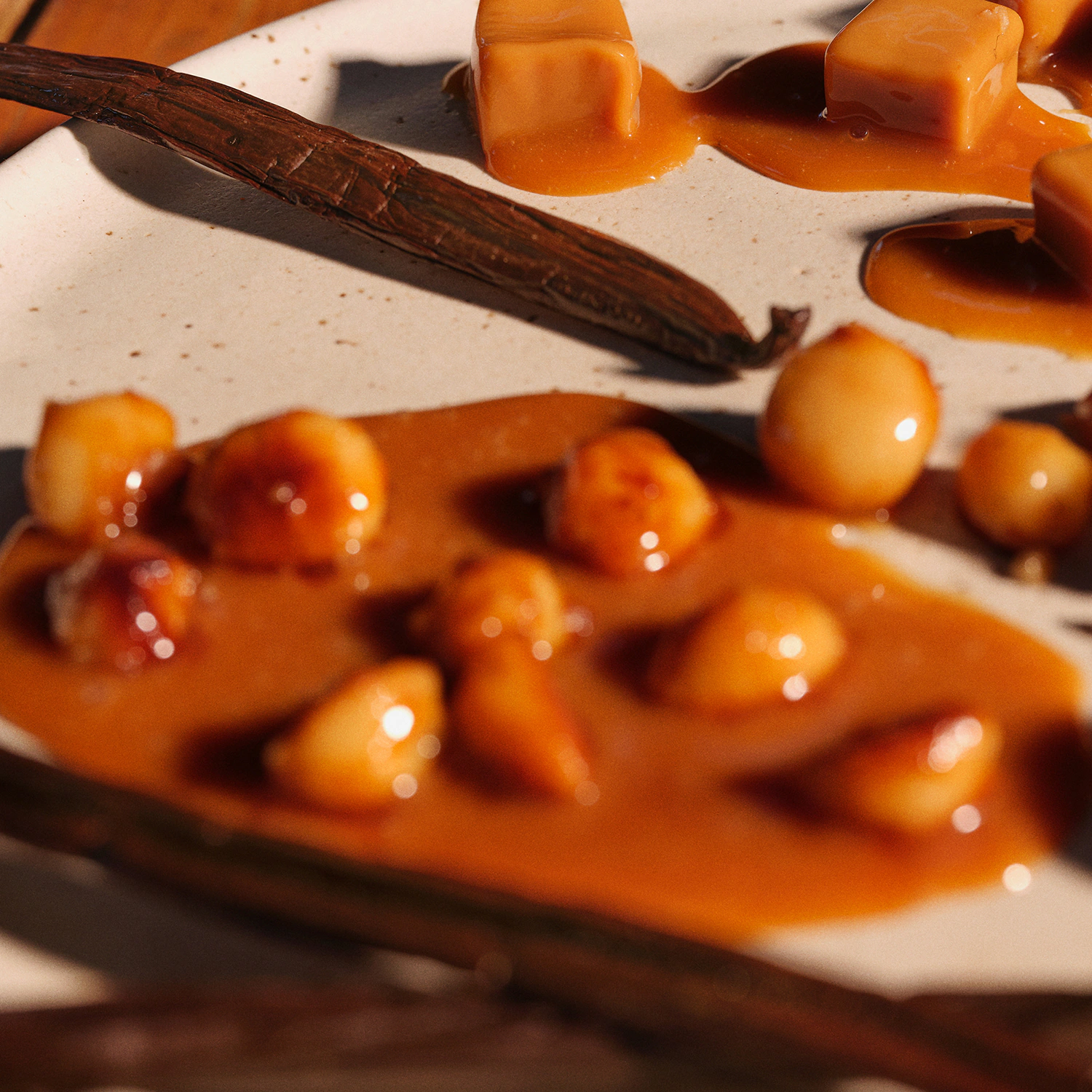 Esta voluptuosa fragancia para el cabello y el cuerpo exuda notas cálidas y tentadoras de vainilla caramelizada y nueces de macadamia tostadas: algo para satisfacer todos los apetitos.