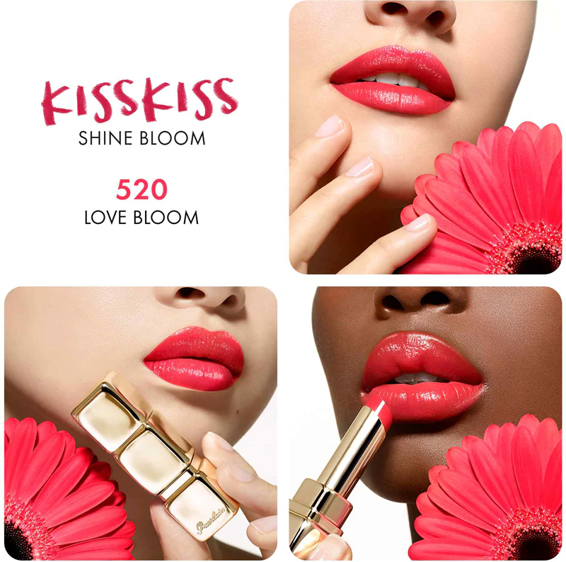 Guerlain presenta KissKiss Shine Bloom, la nueva barra de labios brillante compuesta por un 95 % de ingredientes derivados de la naturaleza¹. Una fórmula con un acabado brillante que no compromete la sensorialidad ni la eficacia. Su excepcional textura fundente se desliza en los labios y los reviste con un color goloso y un brillo acuoso². Una barra de labios floral con acción protectora que proporciona 24 horas³ de hidratación con ingredientes derivados de la naturaleza que miman los labios día tras día.