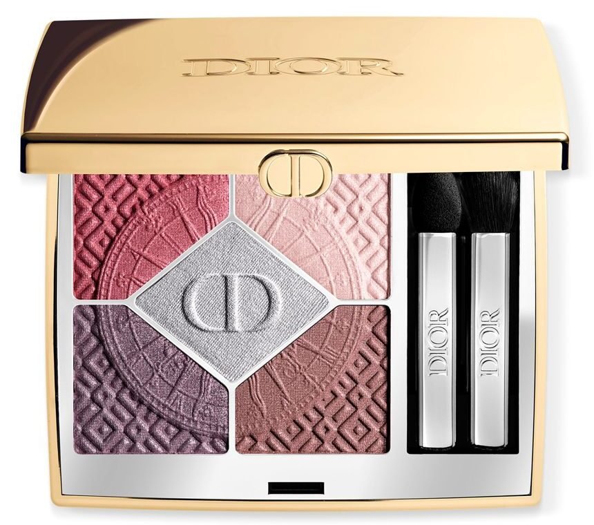 La Paleta de Sombras de Ojos Diorshow 5 Couleurs de Dior es una edición limitada que celebra las fiestas de fin de año. Incluye cinco sombras de ojos en polvo, presentadas en un estuche dorado con un motivo grabado diseñado por el artista Pietro Ruffo. Ofrece dos armonías radiantes: una con un corazón dorado luminoso y tonos melocotón, rosa y burdeos, y otra con un corazón plateado metalizado junto a colores topo, champán y rosa. Cada sombra proporciona un acabado de larga duración con una textura cremosa y confortable, adecuada para un maquillaje festivo y luminoso.
